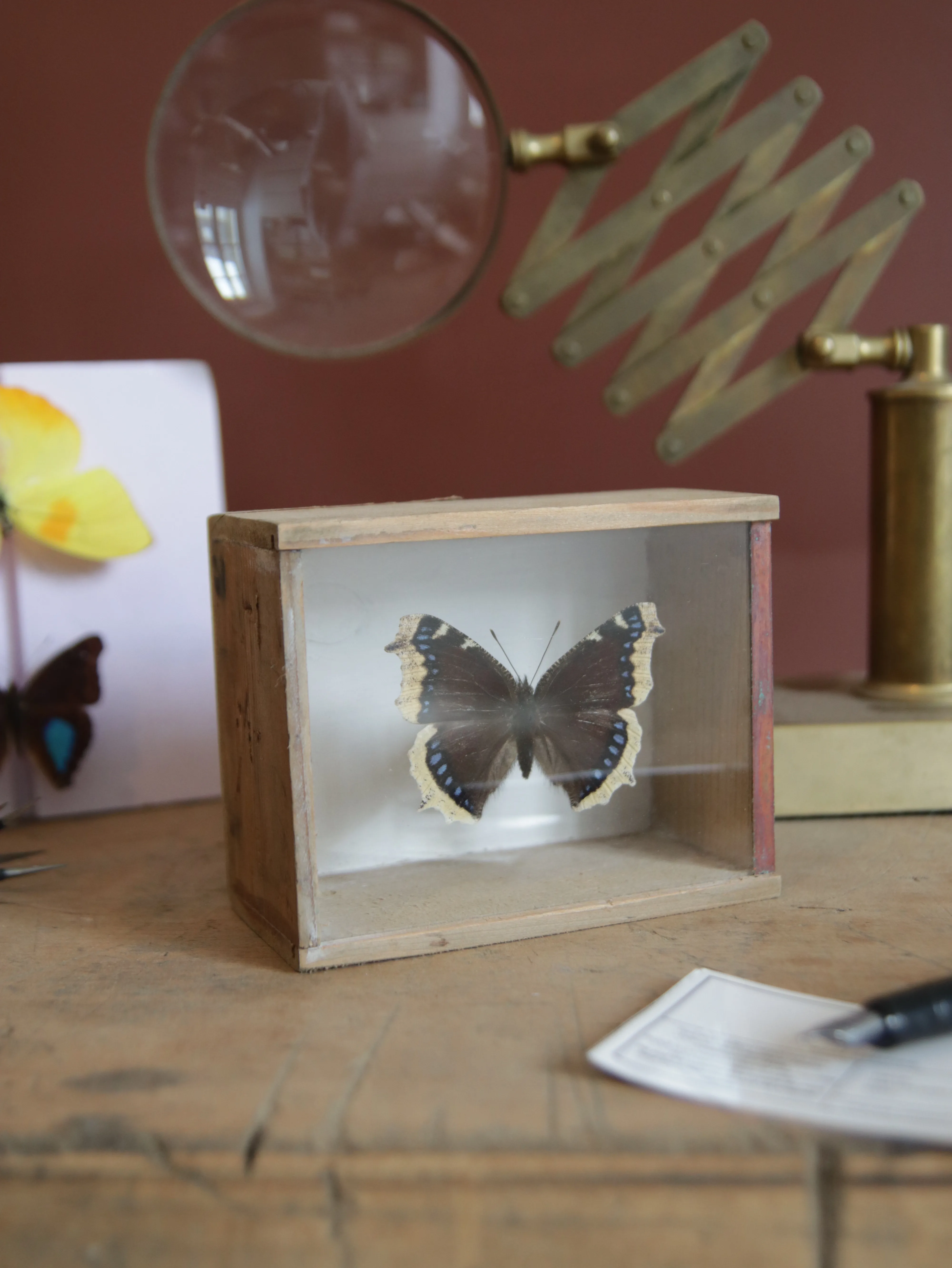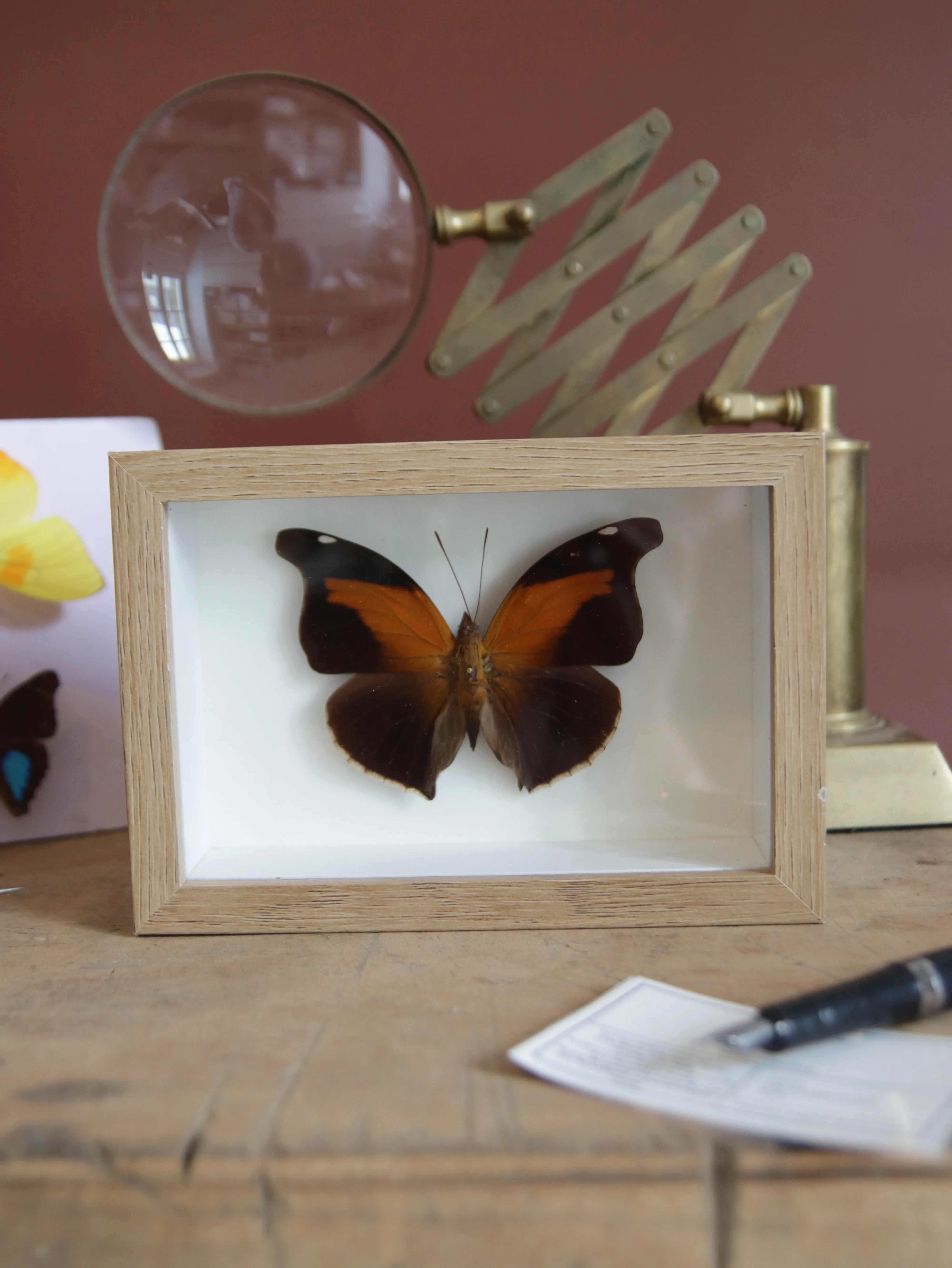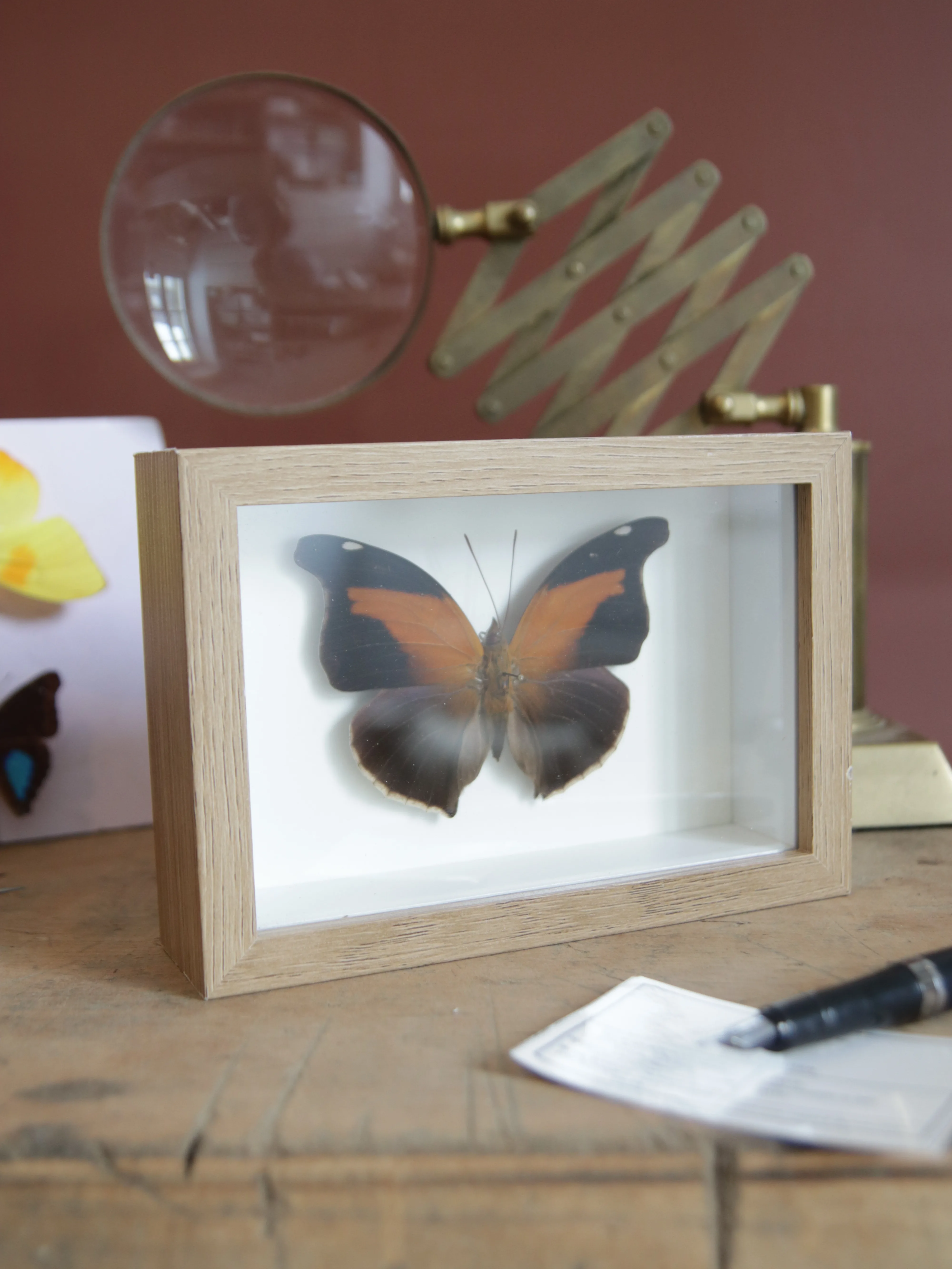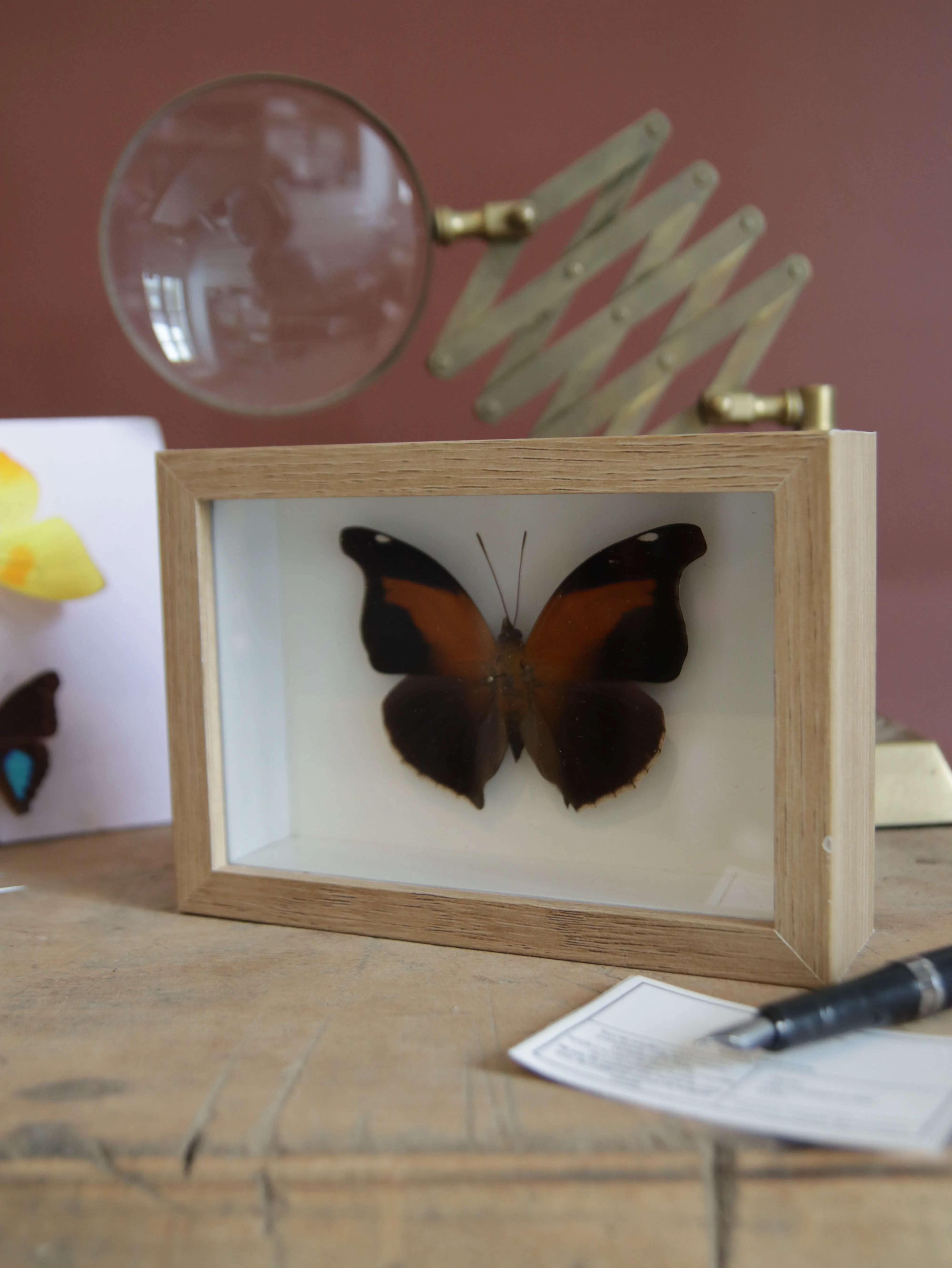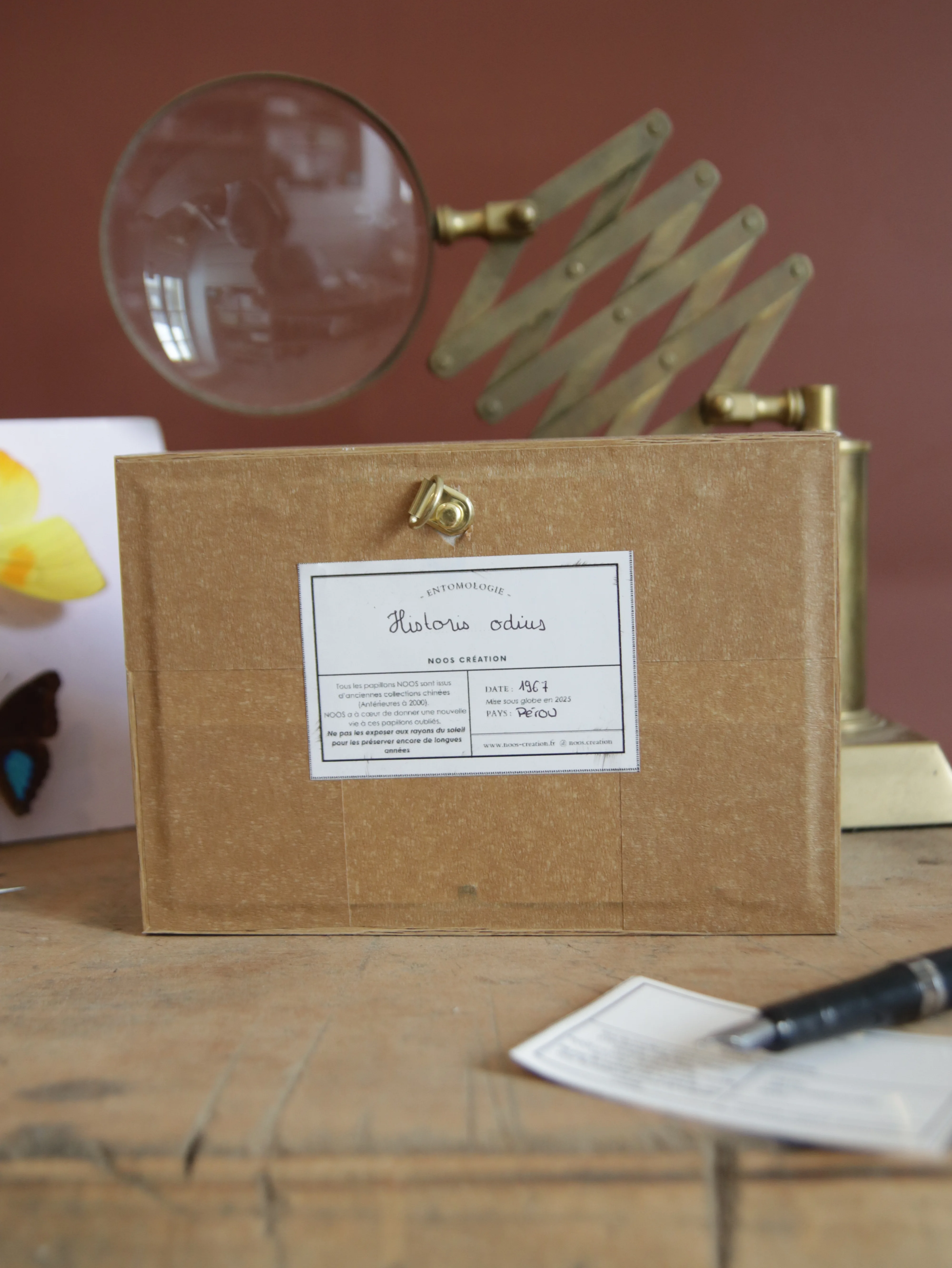 Nous redonnons vie à d’anciennes collections de papillons et d’insectes (antérieures à 2000). Chinés avec passion, restaurés avec minutie, ces spécimens retrouvent leur éclat d’origine et s’invitent dans votre intérieur en apportant une touche d’élégance et de poésie. Grâce à un savoir-faire artisanal, nous préservons la délicatesse de ces insectes pour qu’ils traversent le temps et continuent d’illuminer votre quotidien.