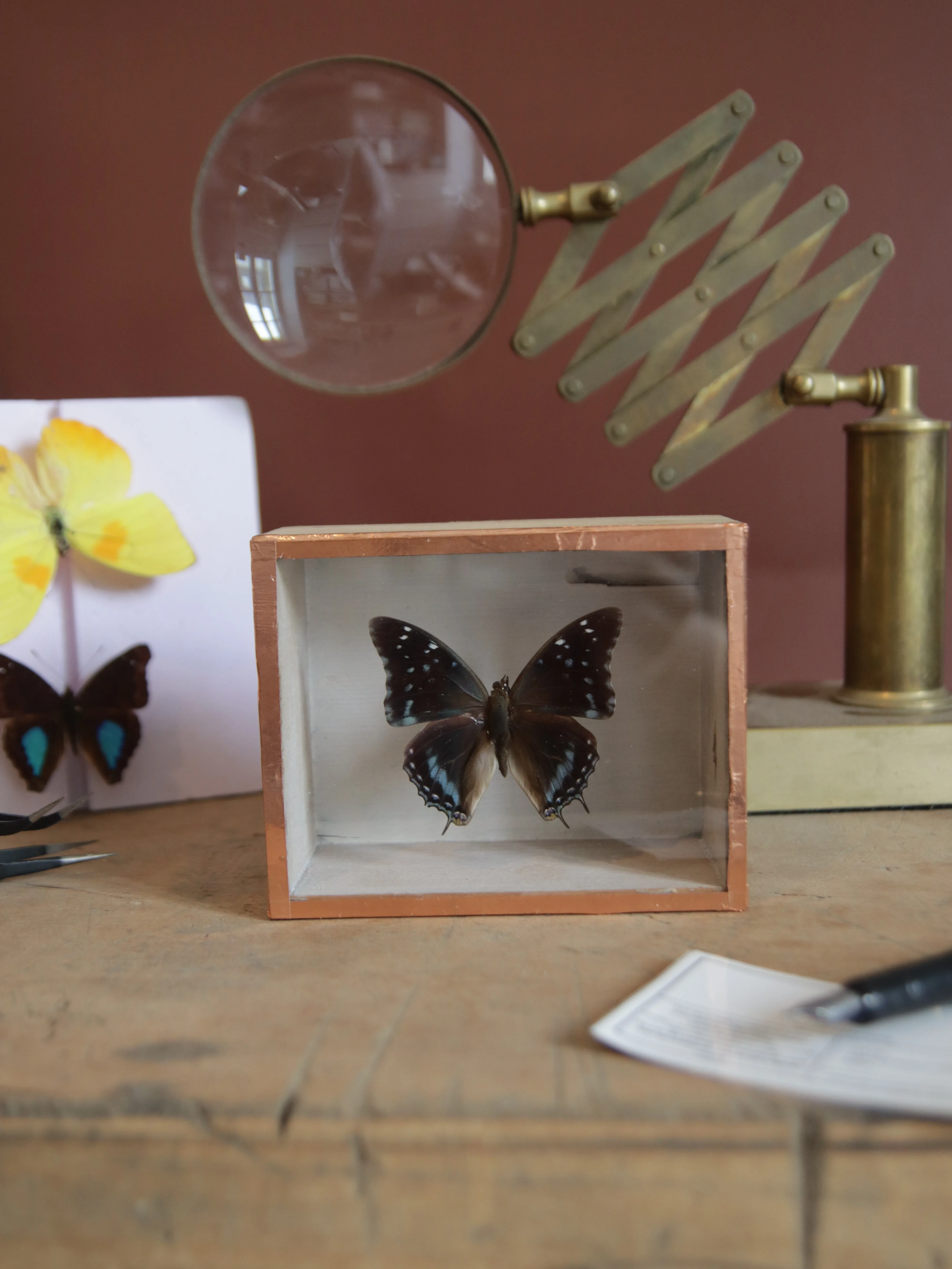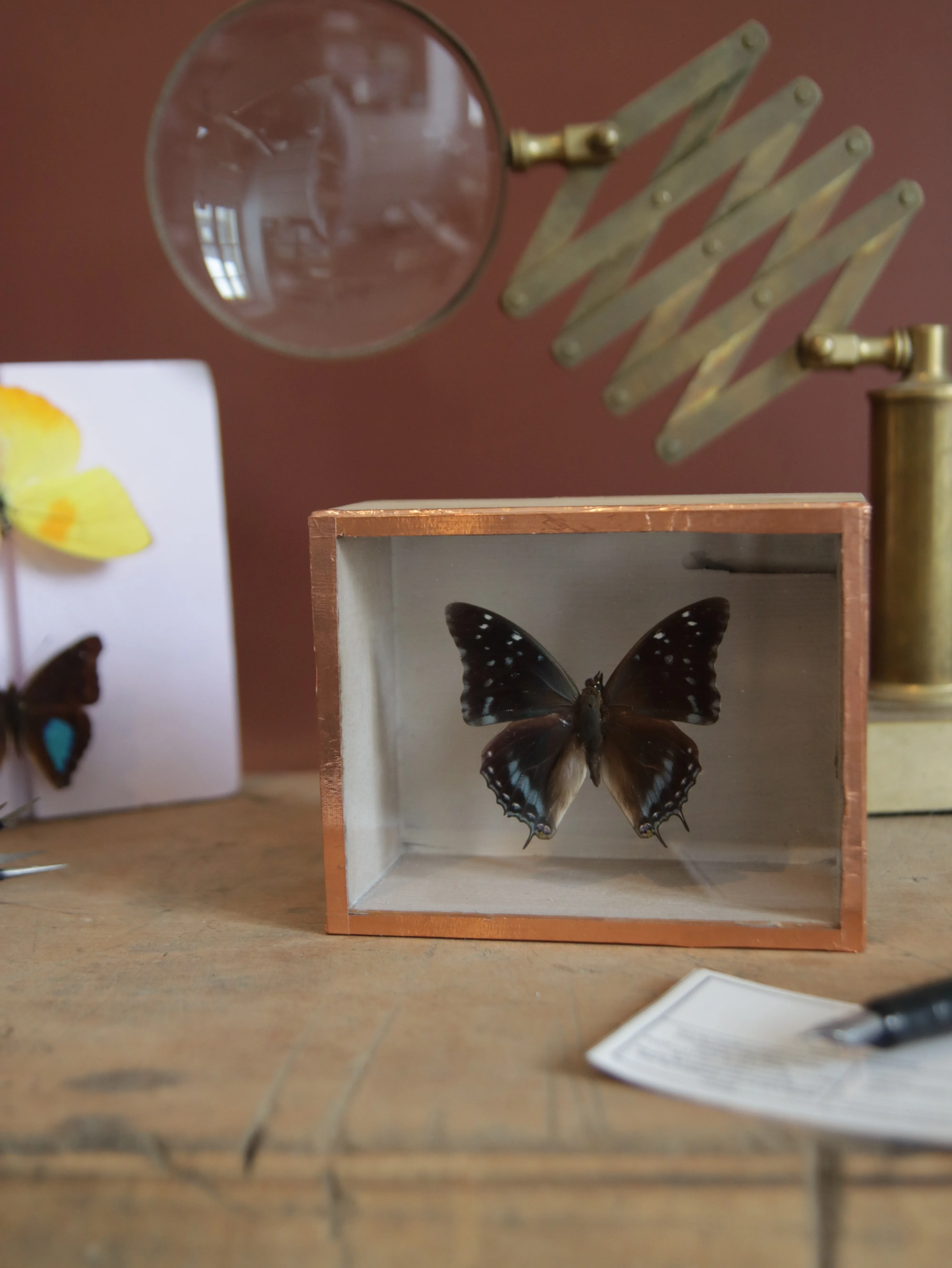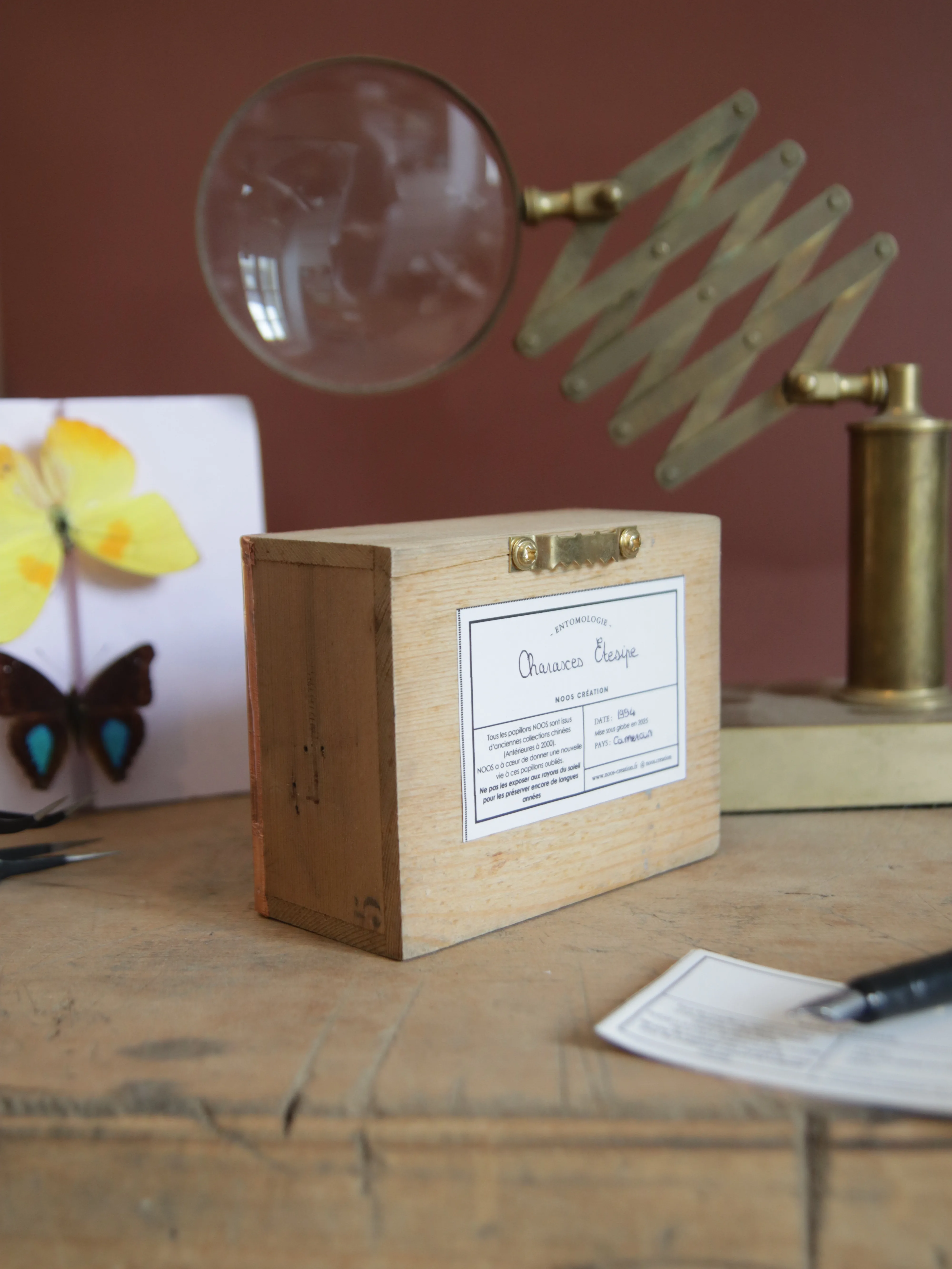 Nous redonnons vie à d’anciennes collections de papillons et d’insectes (antérieures à 2000). Chinés avec passion, restaurés avec minutie, ces spécimens retrouvent leur éclat d’origine et s’invitent dans votre intérieur en apportant une touche d’élégance et de poésie. Grâce à un savoir-faire artisanal, nous préservons la délicatesse de ces insectes pour qu’ils traversent le temps et continuent d’illuminer votre quotidien.