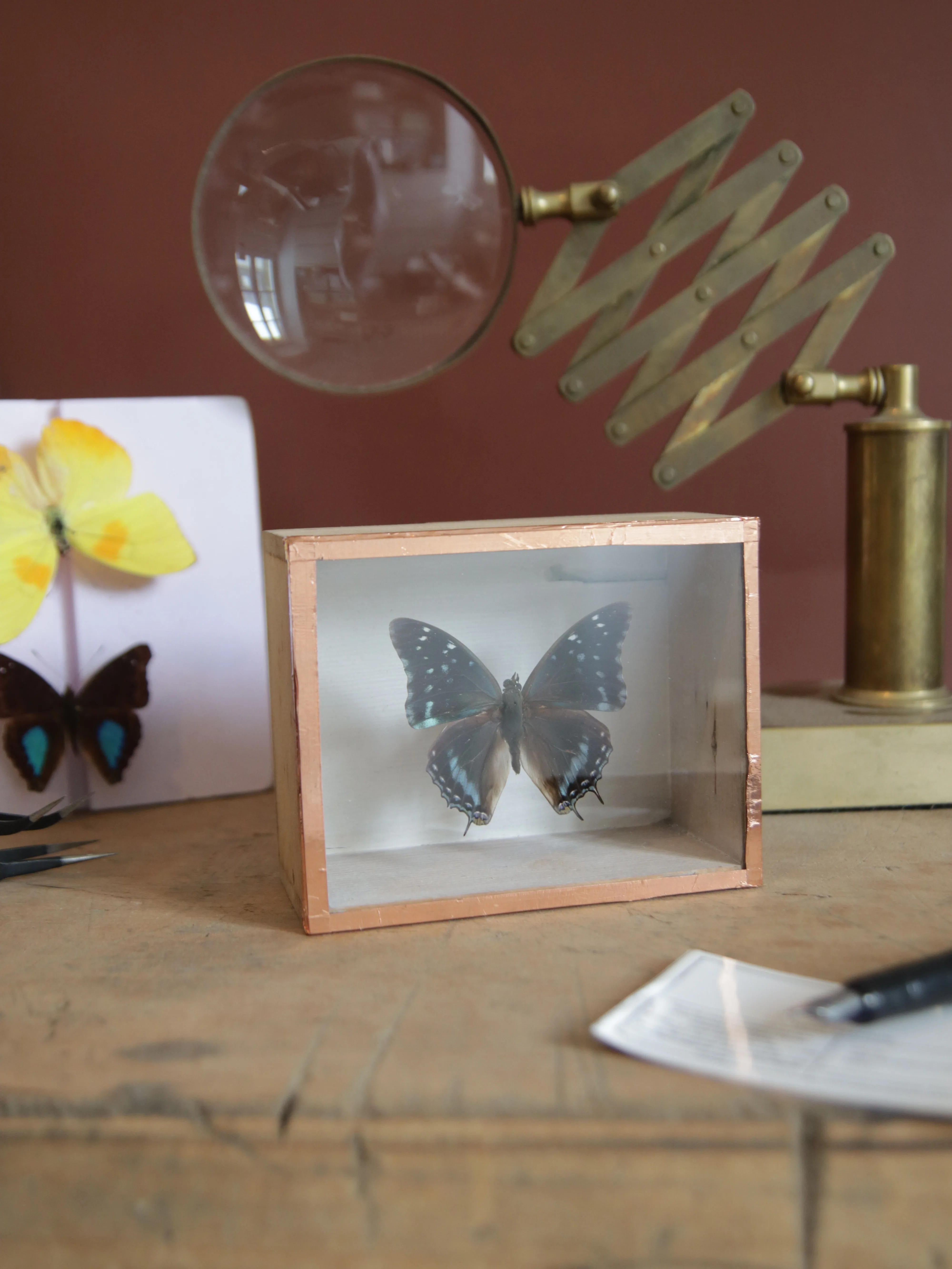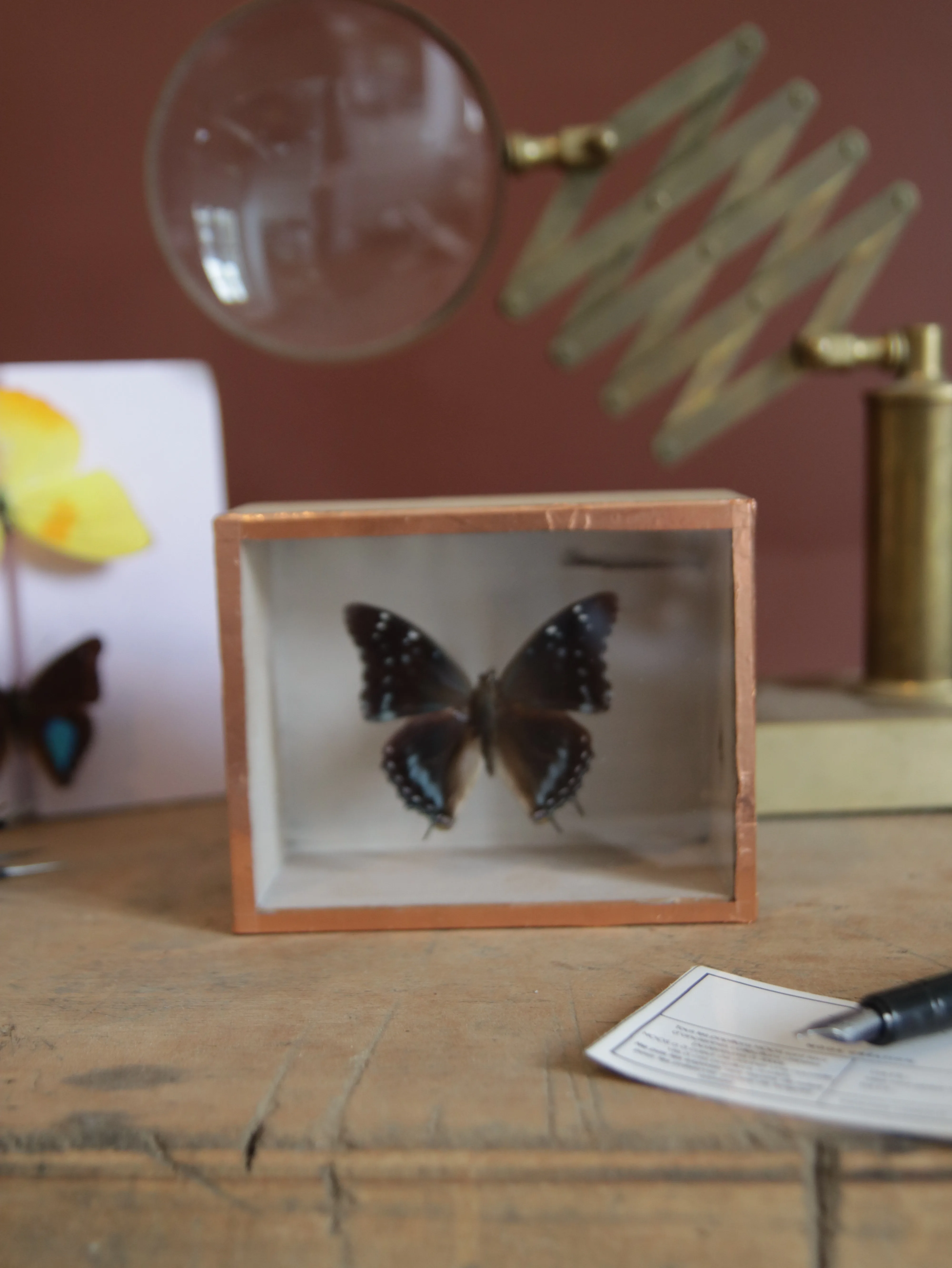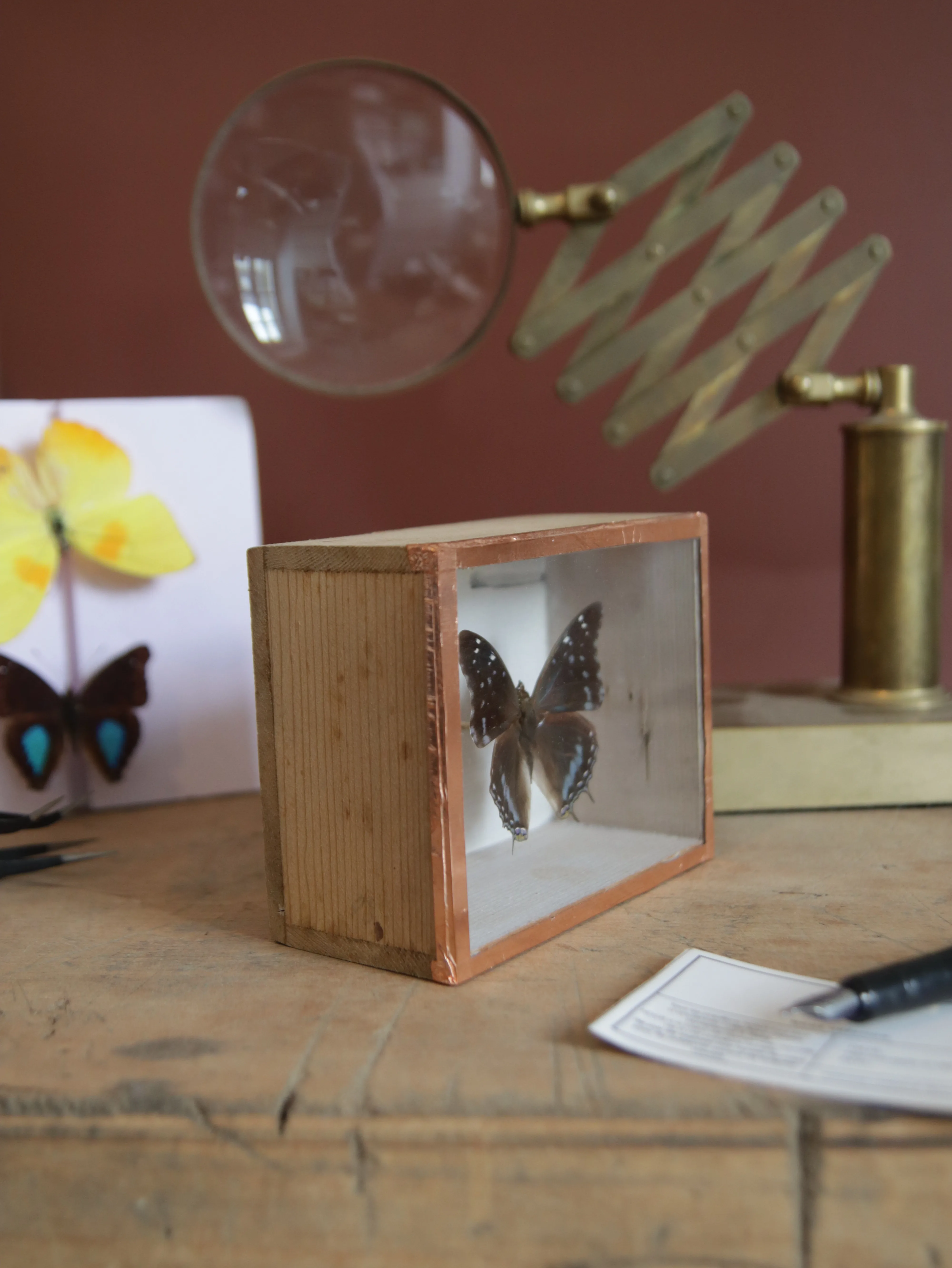 Nous redonnons vie à d’anciennes collections de papillons et d’insectes (antérieures à 2000). Chinés avec passion, restaurés avec minutie, ces spécimens retrouvent leur éclat d’origine et s’invitent dans votre intérieur en apportant une touche d’élégance et de poésie. Grâce à un savoir-faire artisanal, nous préservons la délicatesse de ces insectes pour qu’ils traversent le temps et continuent d’illuminer votre quotidien.