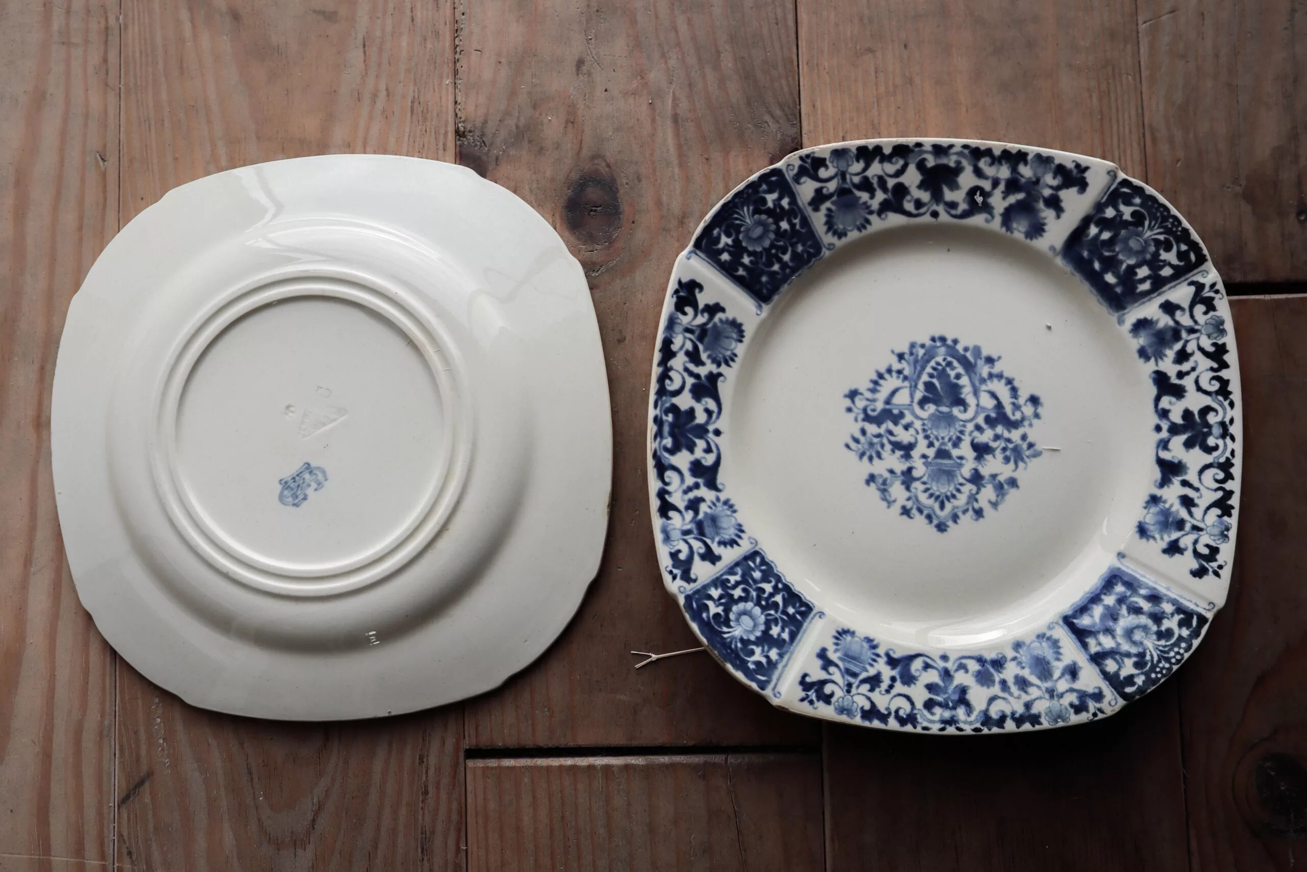 2 jolies assiettes au format carré en porcelaine de Gien datant de 1950