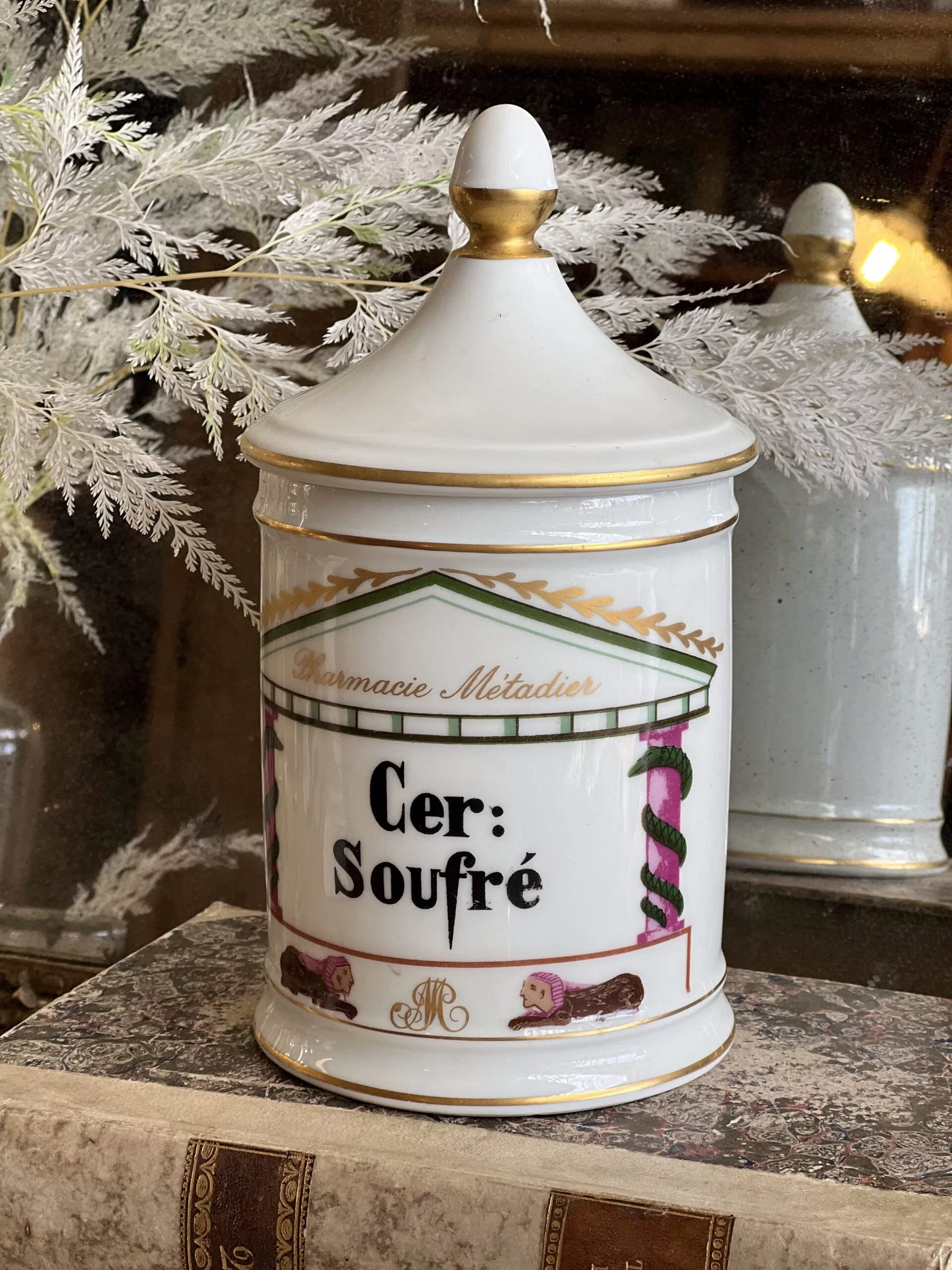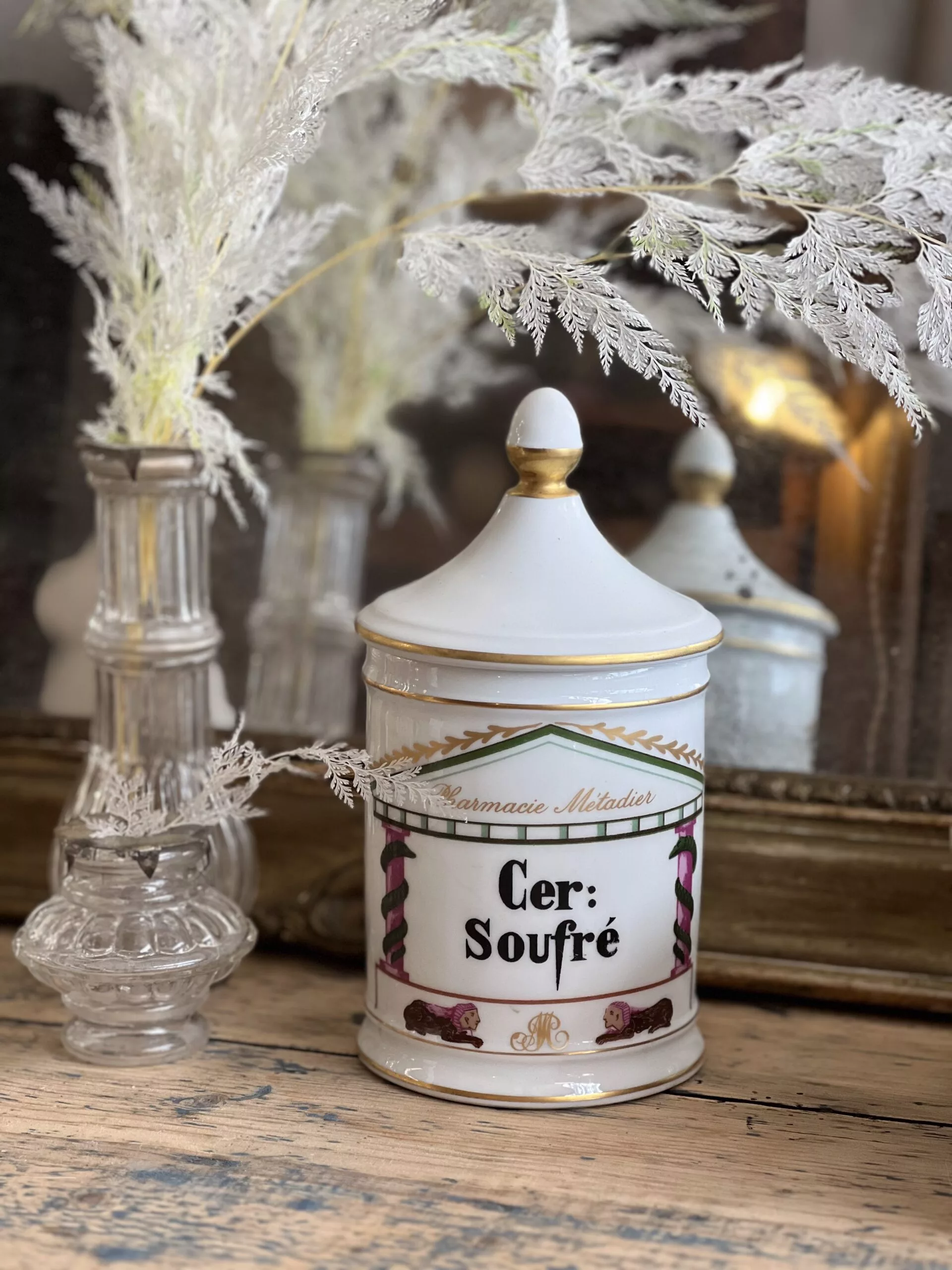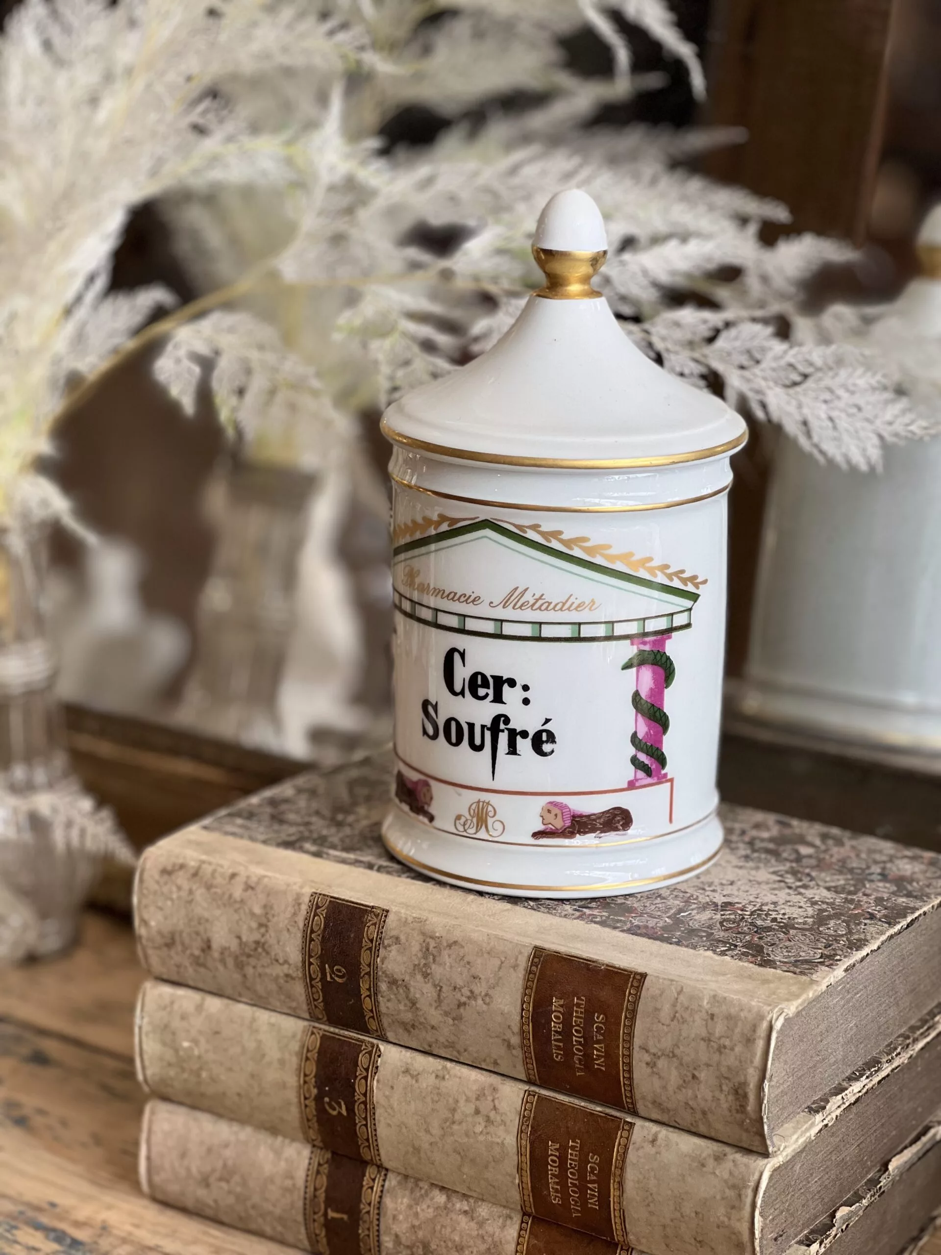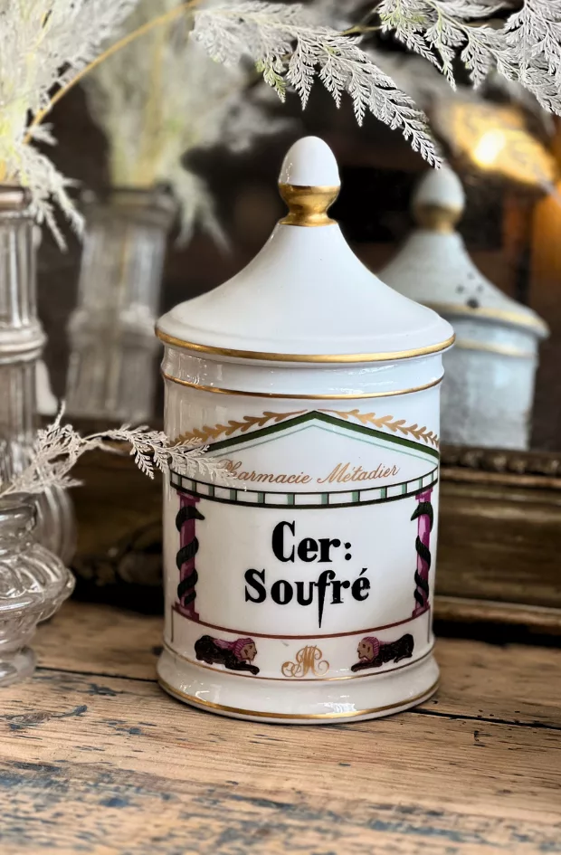 Joli pot à Pharmacie ancien de « Cer Soufré » de la pharmacie Métadier
