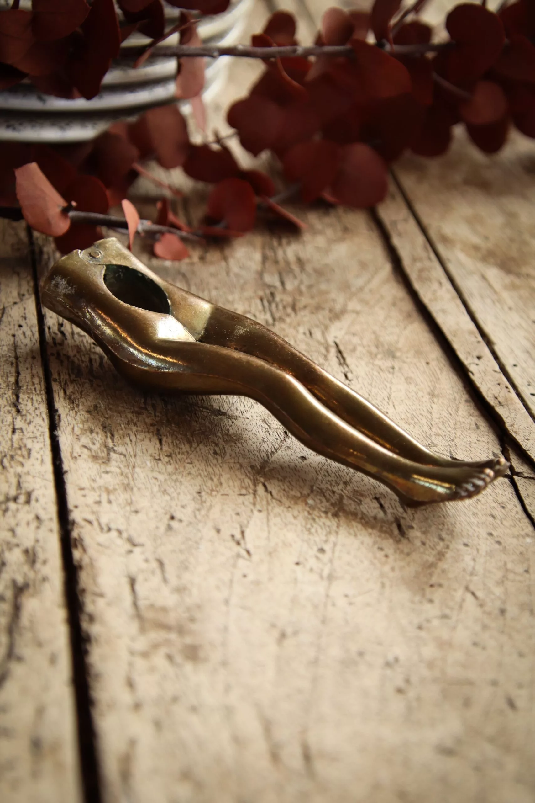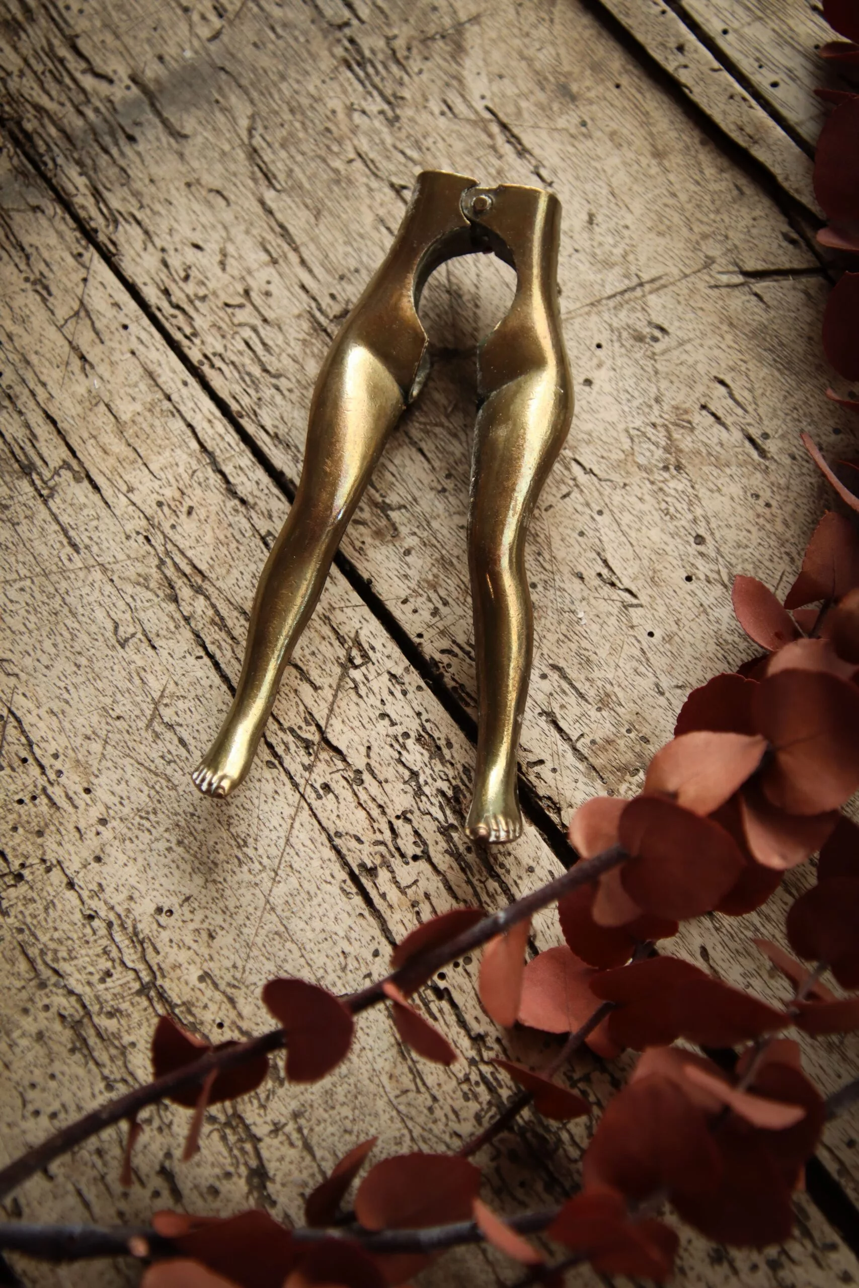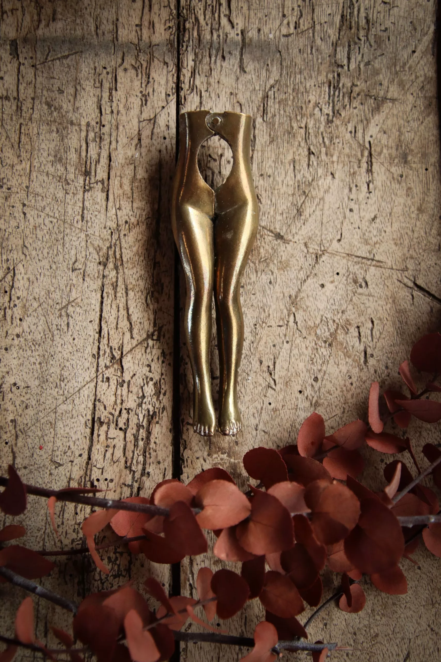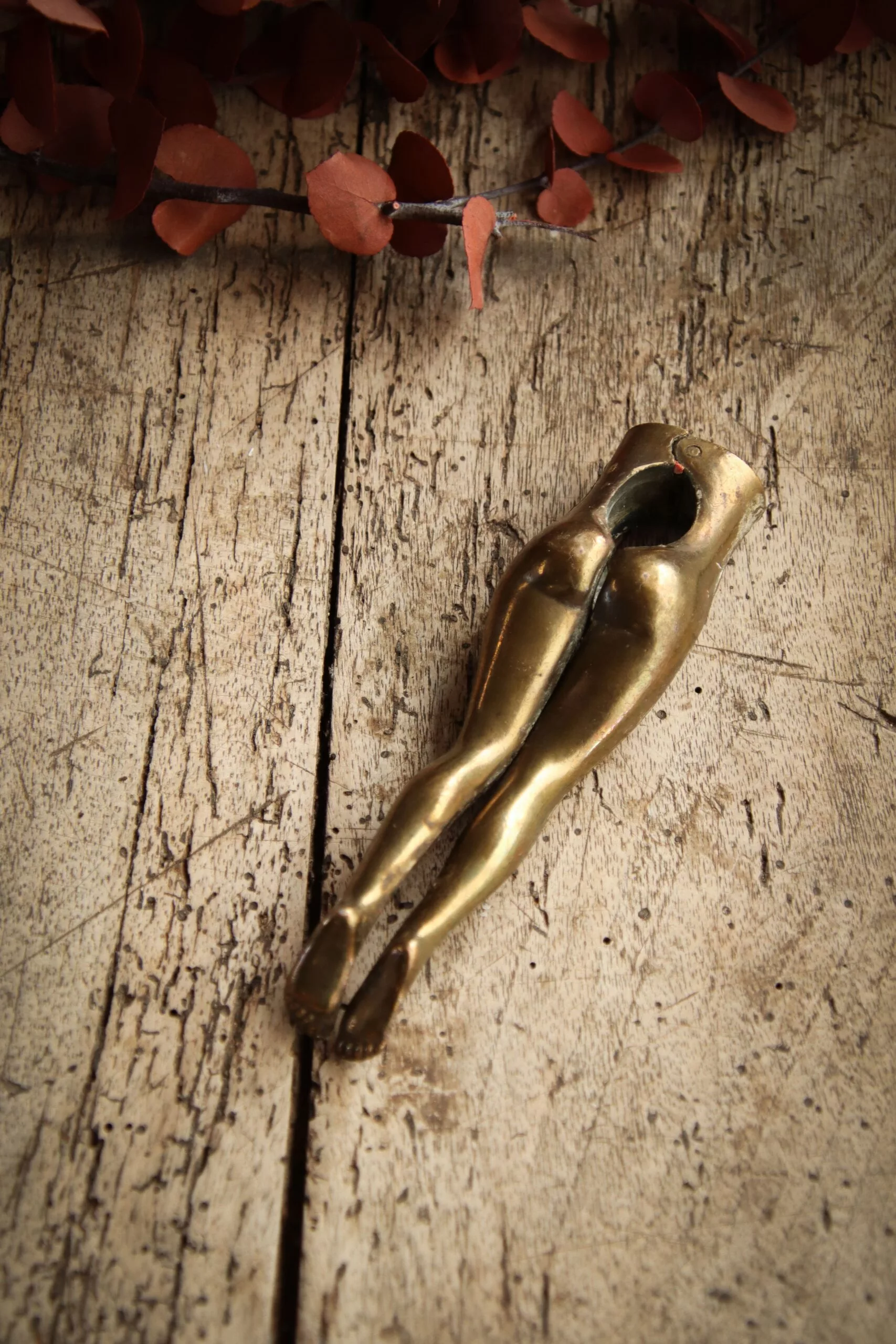 Curieux casse-noix en laiton, représentant des jambes de femme