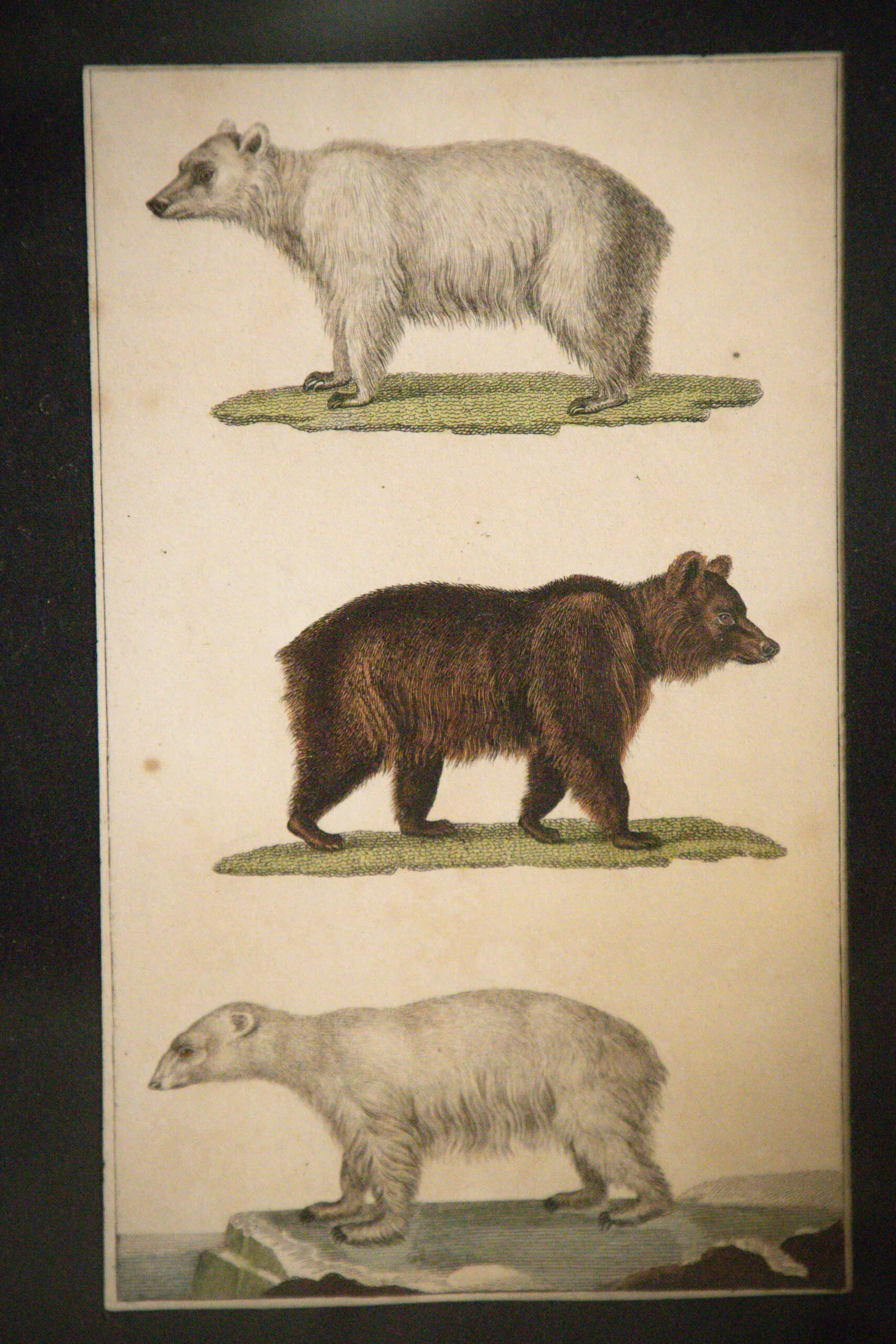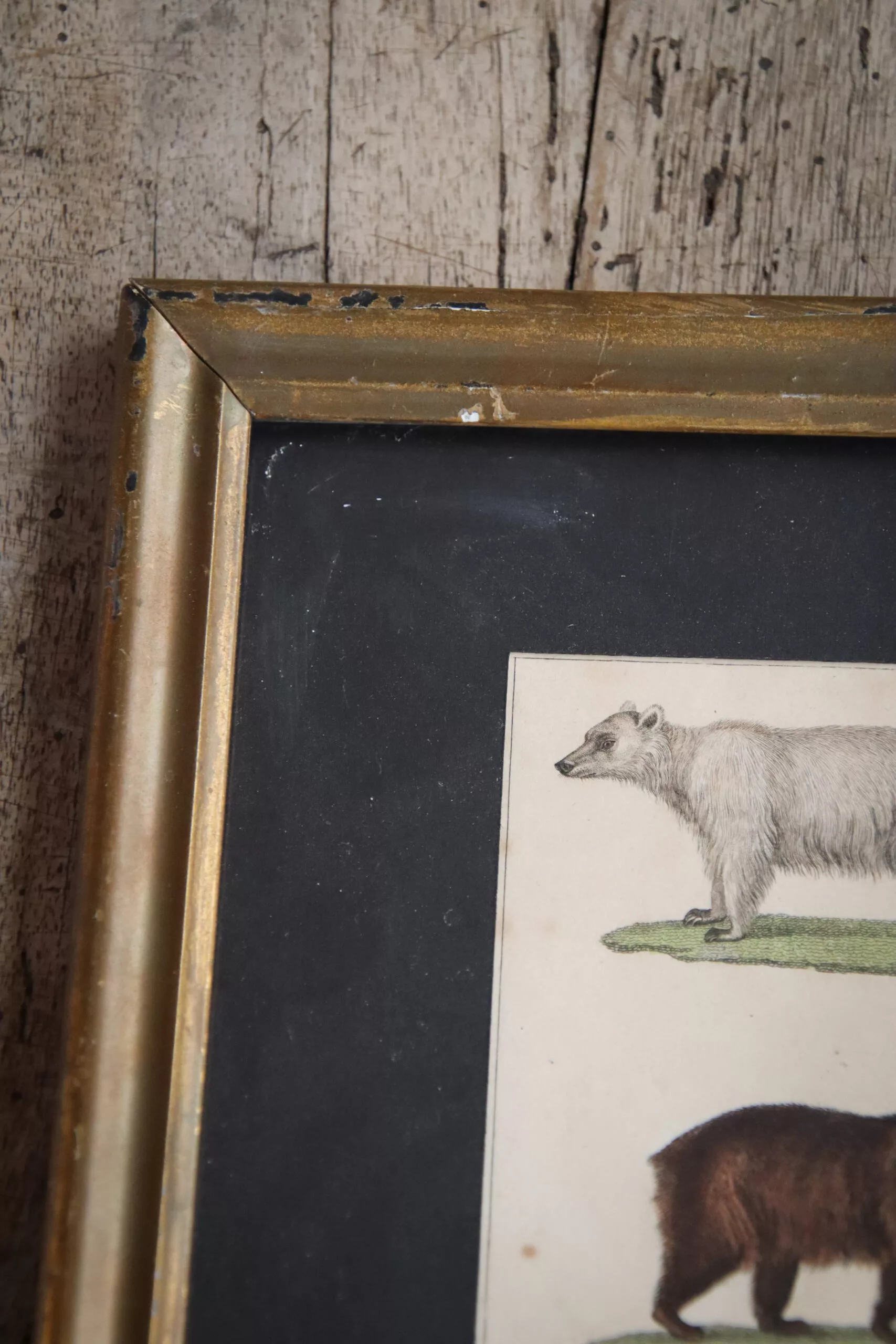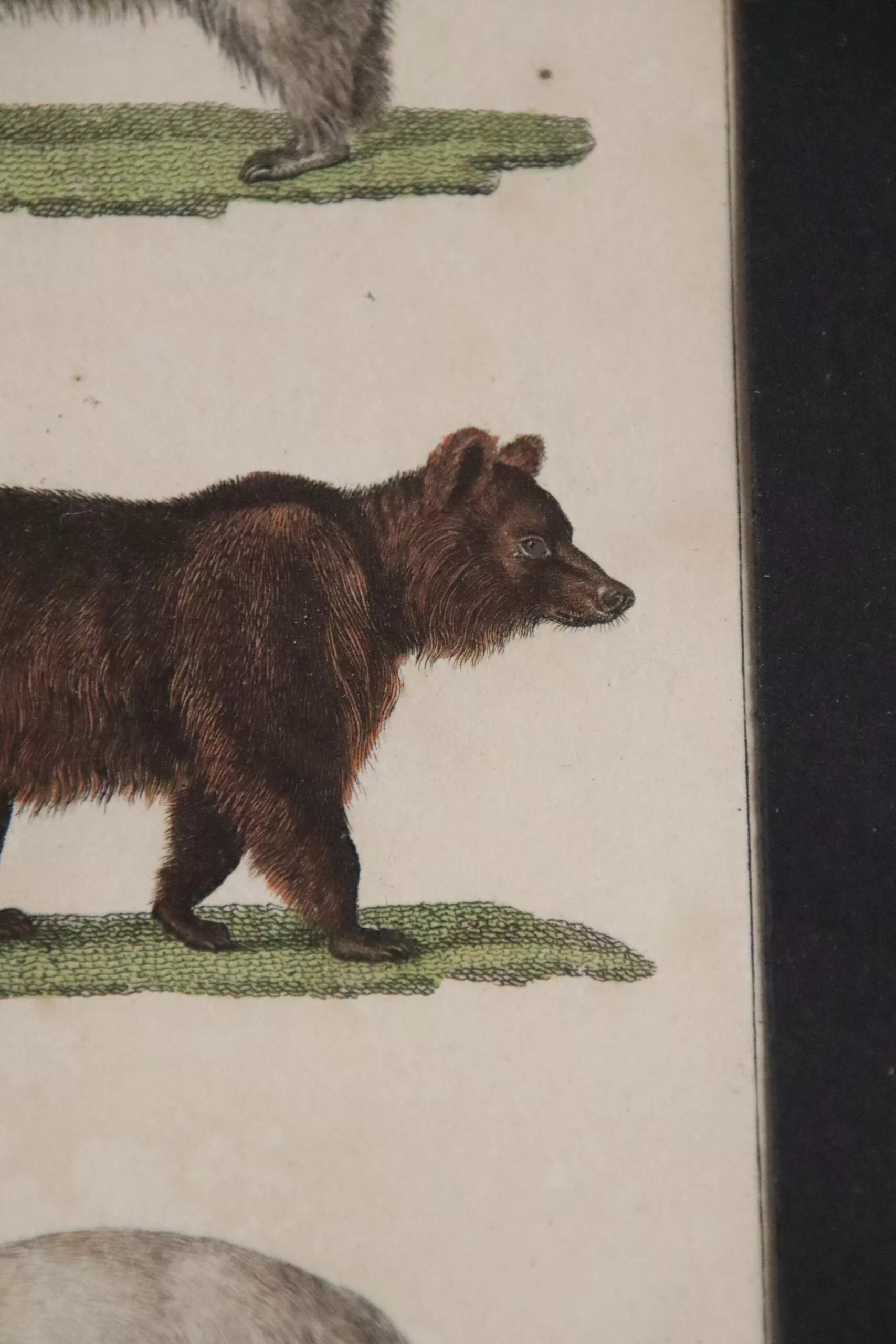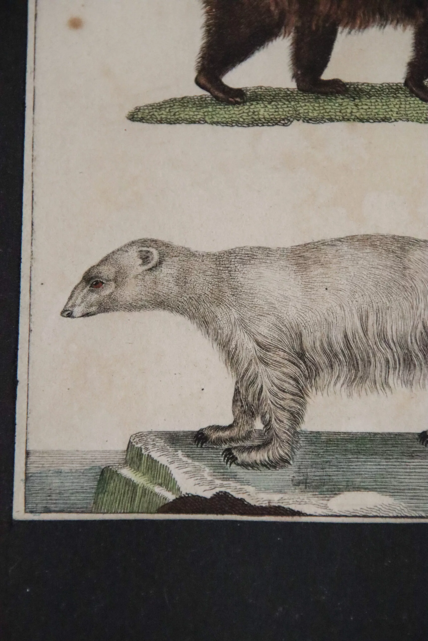 Dans un cadre ancien, jolie gravure par Buffon datant de la fin du 18ᵉ / début du 19ᵉ représentant des ours