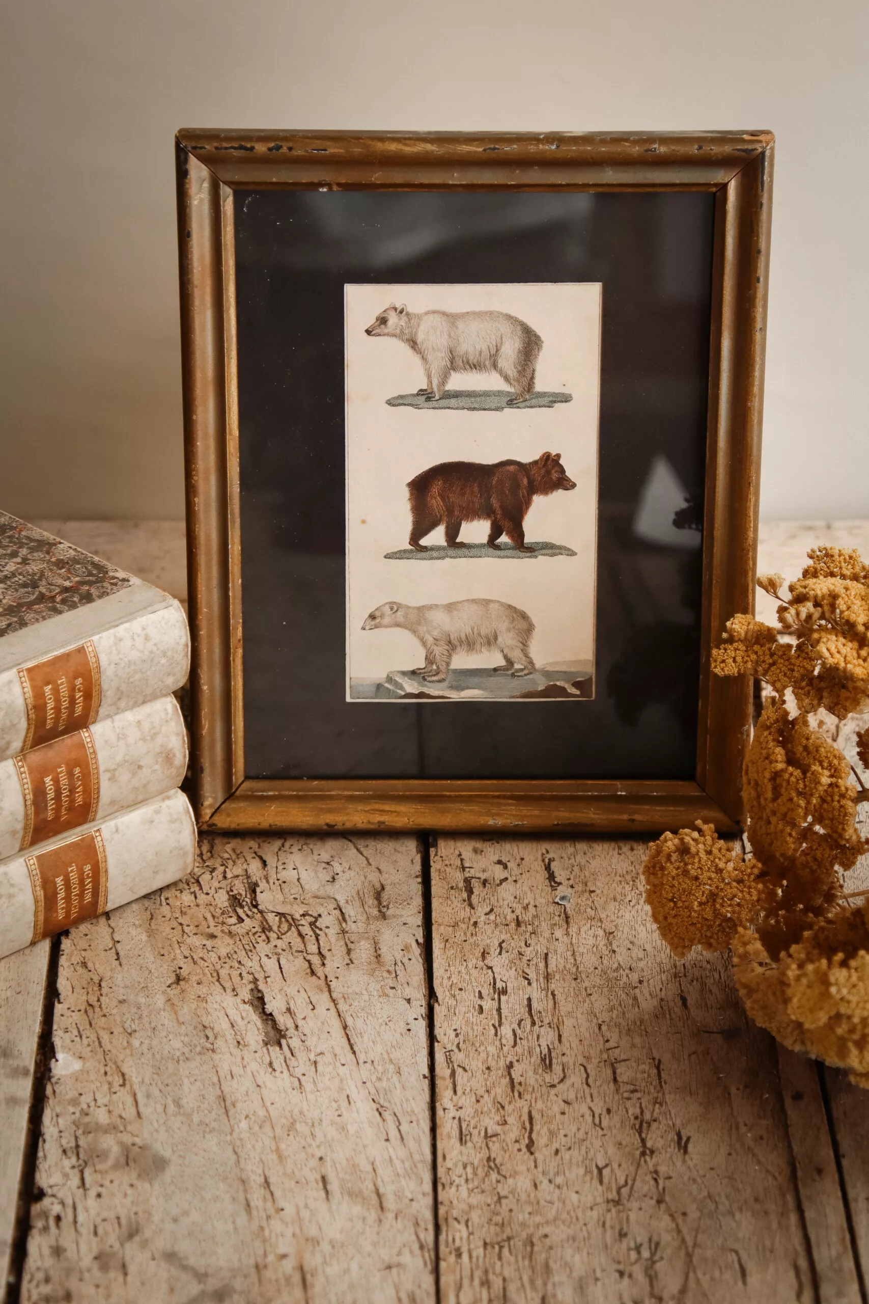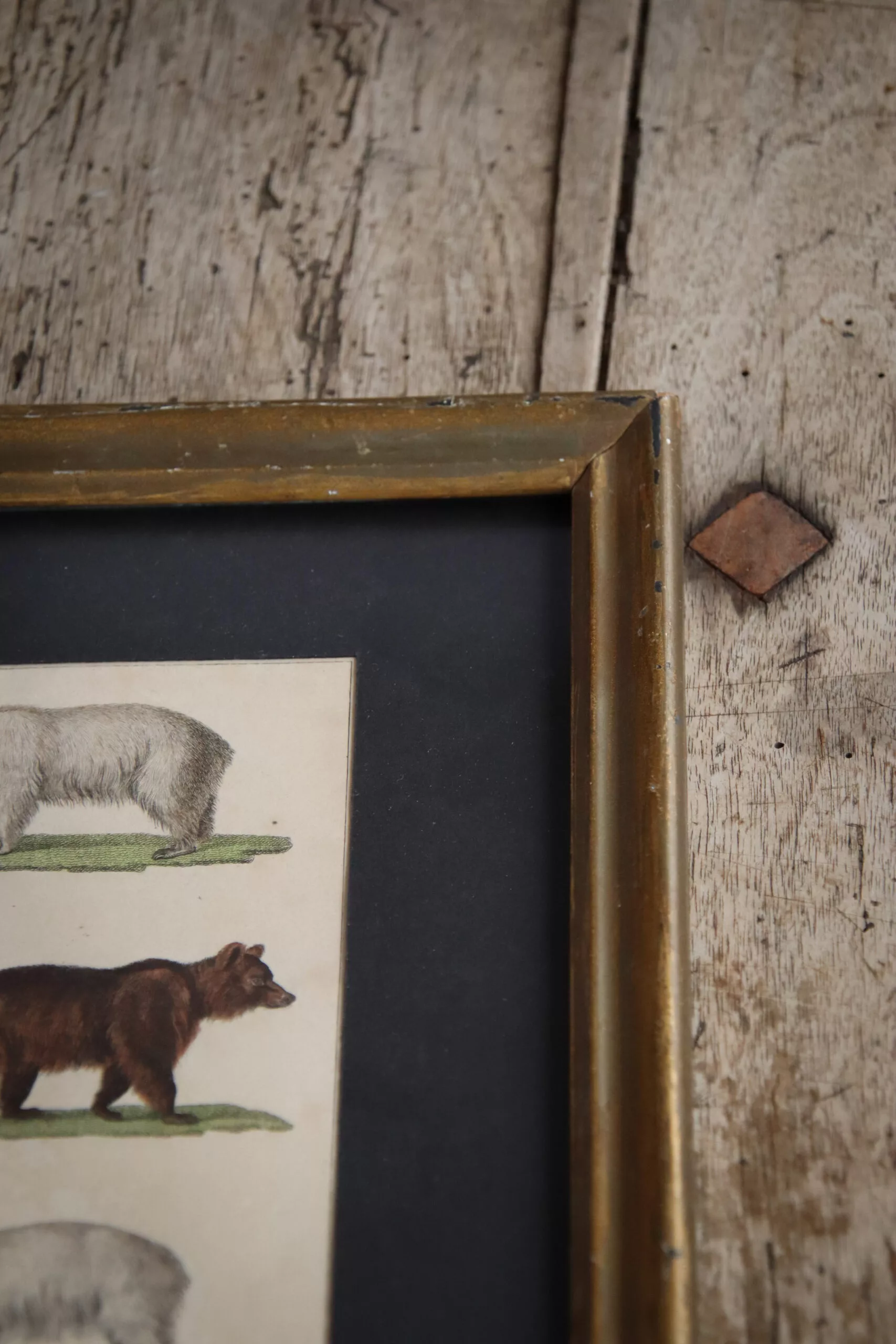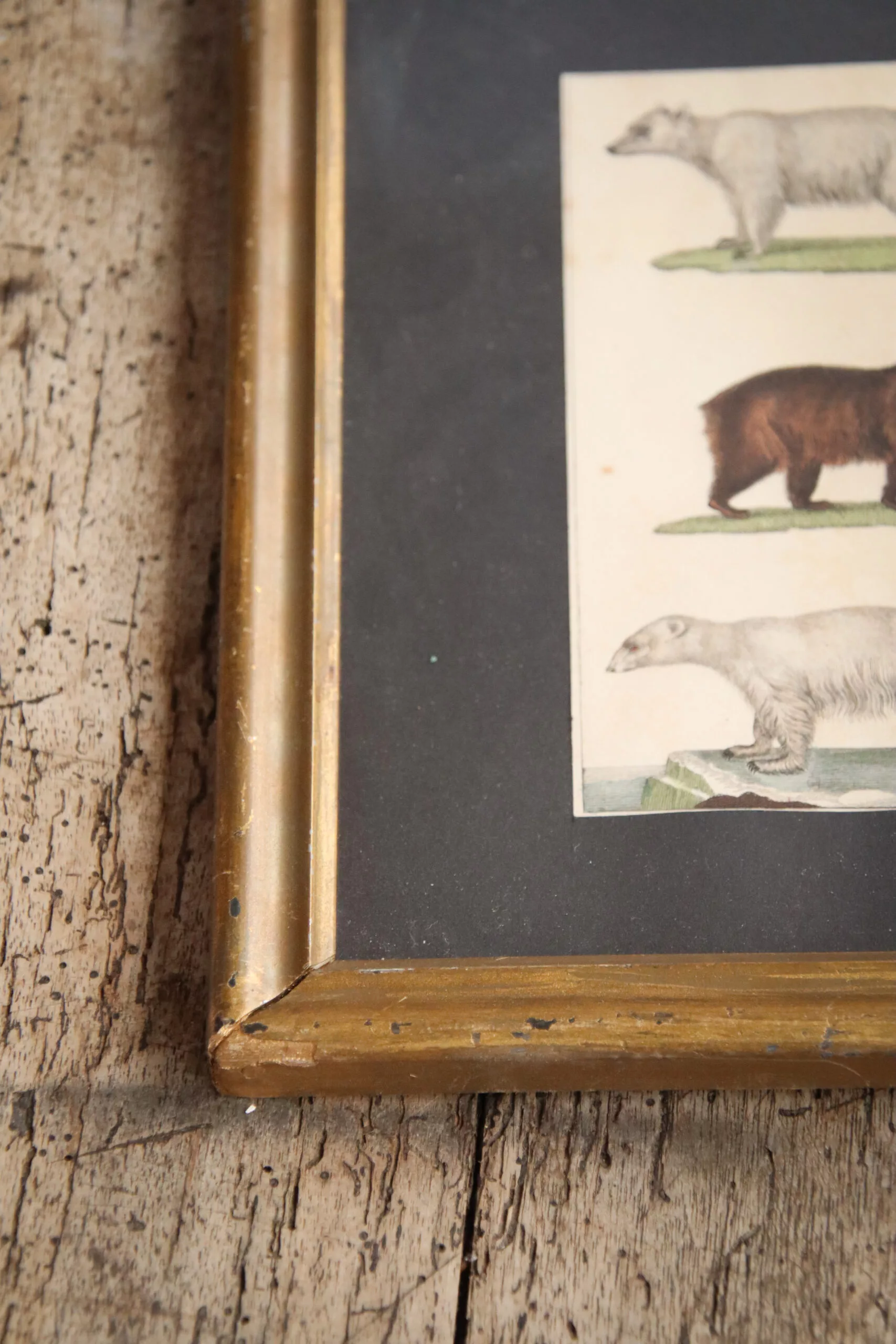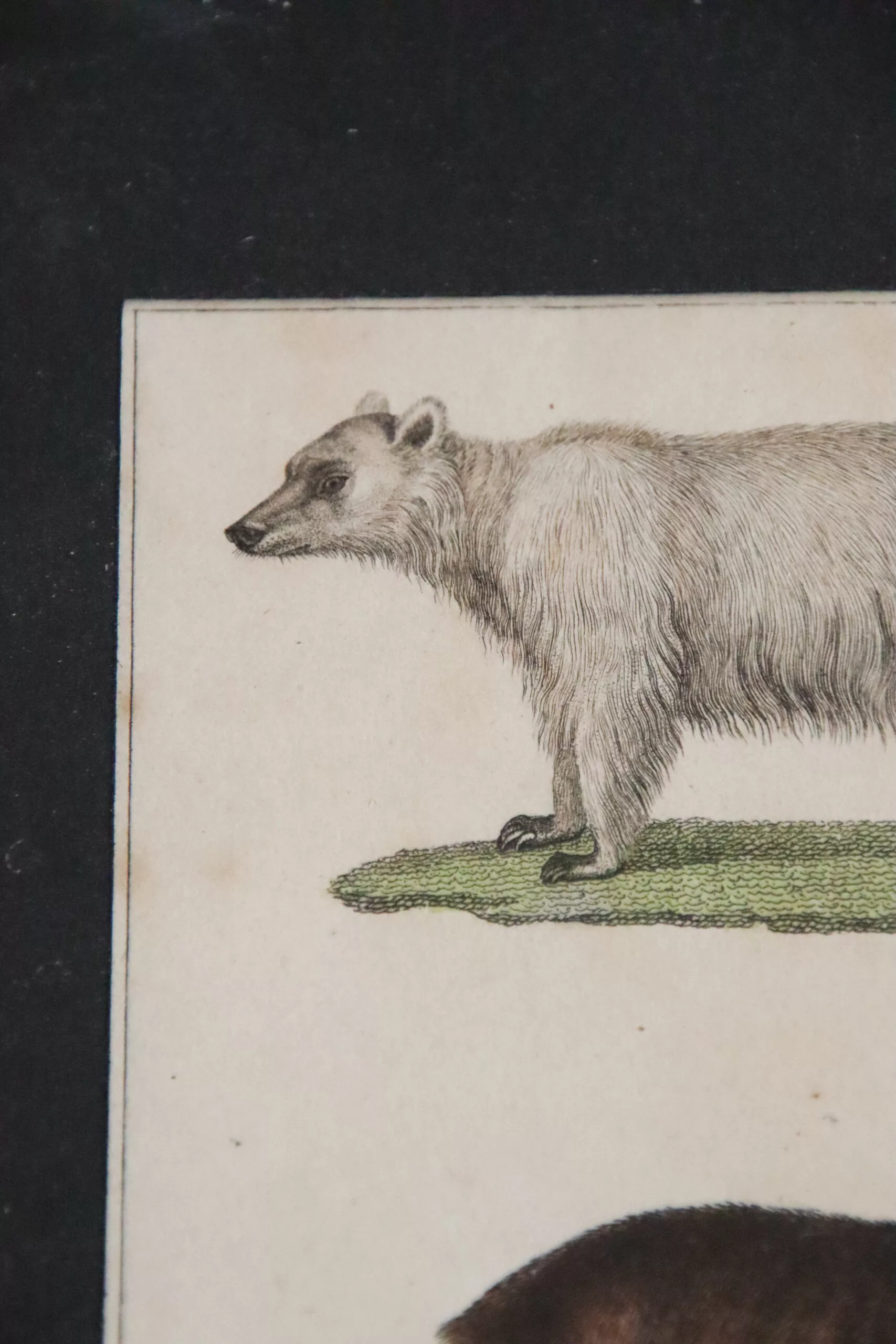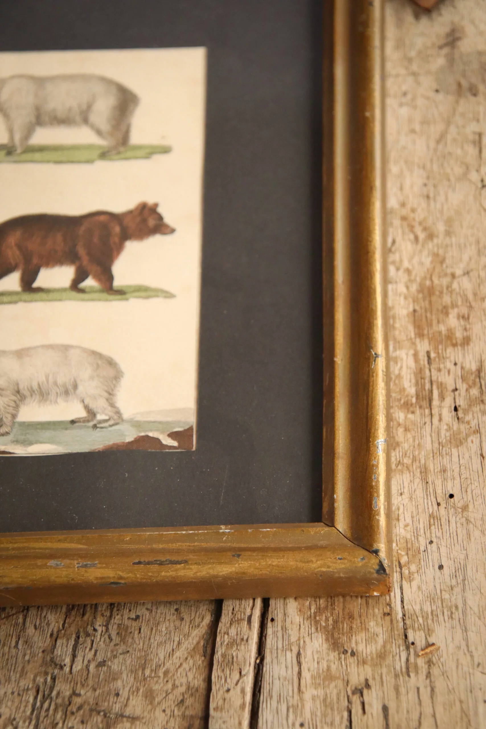Dans un cadre ancien, jolie gravure par Buffon datant de la fin du 18ᵉ / début du 19ᵉ représentant des ours