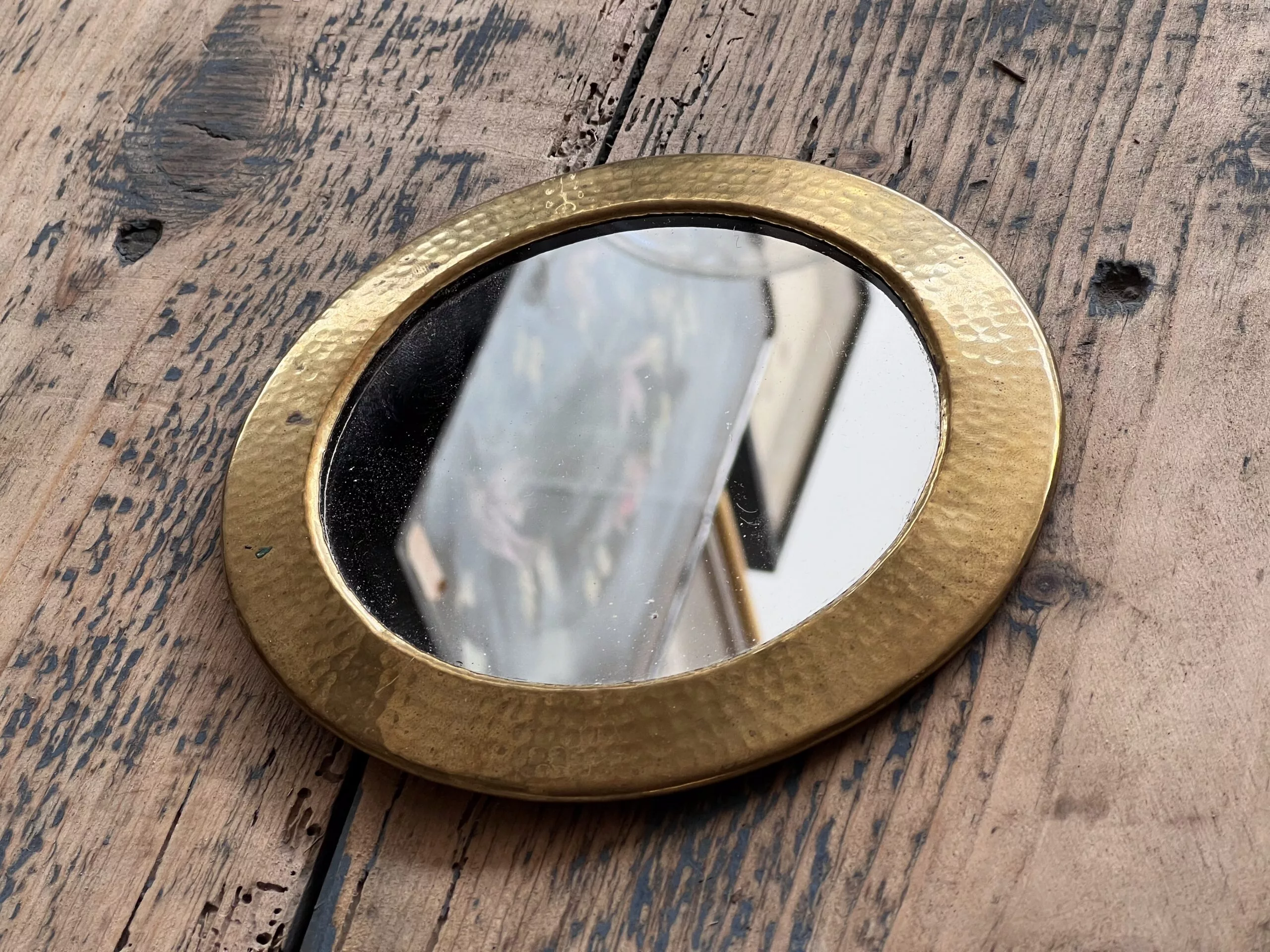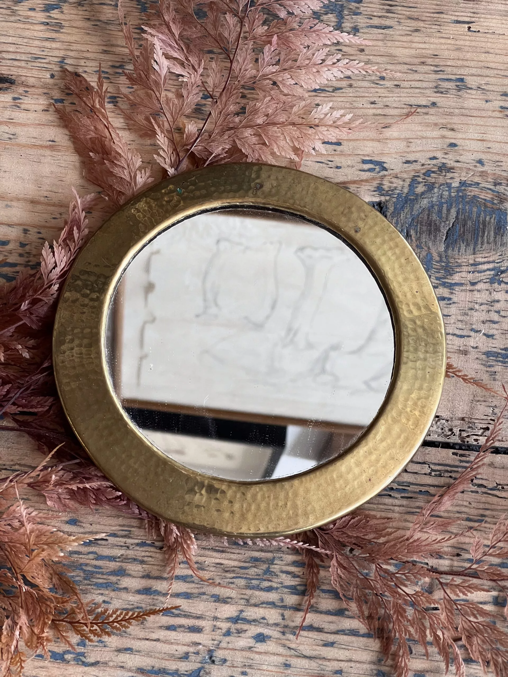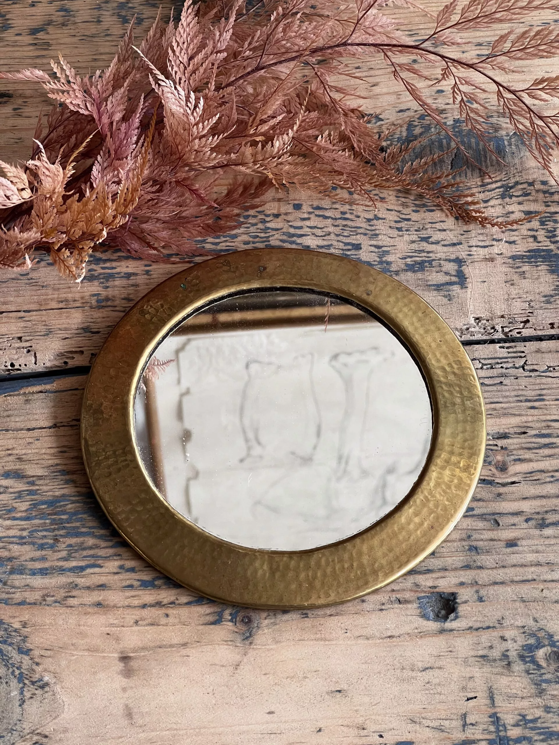 Charmant petit miroir métal doré mesurant 15 cm de diamètre.