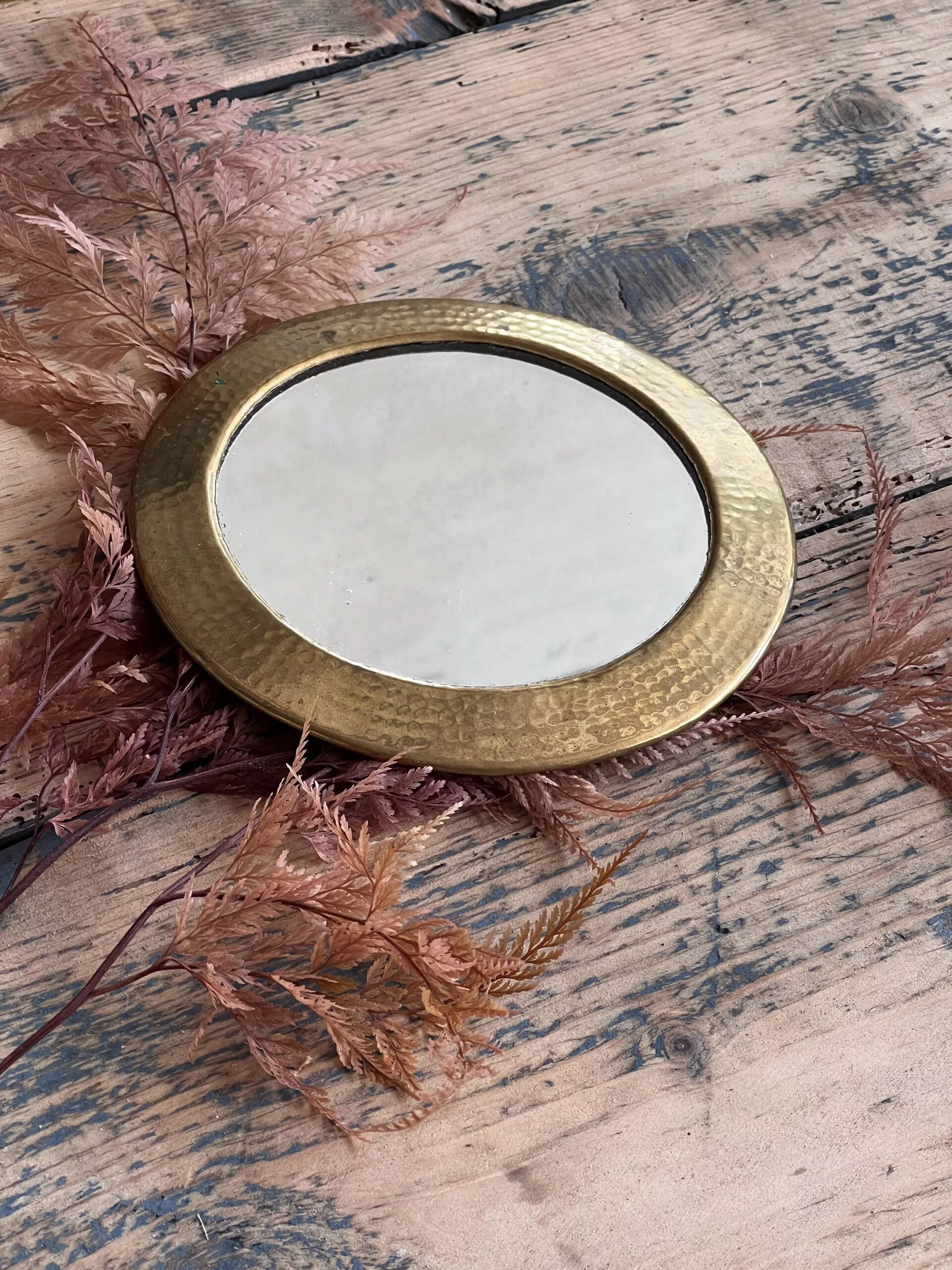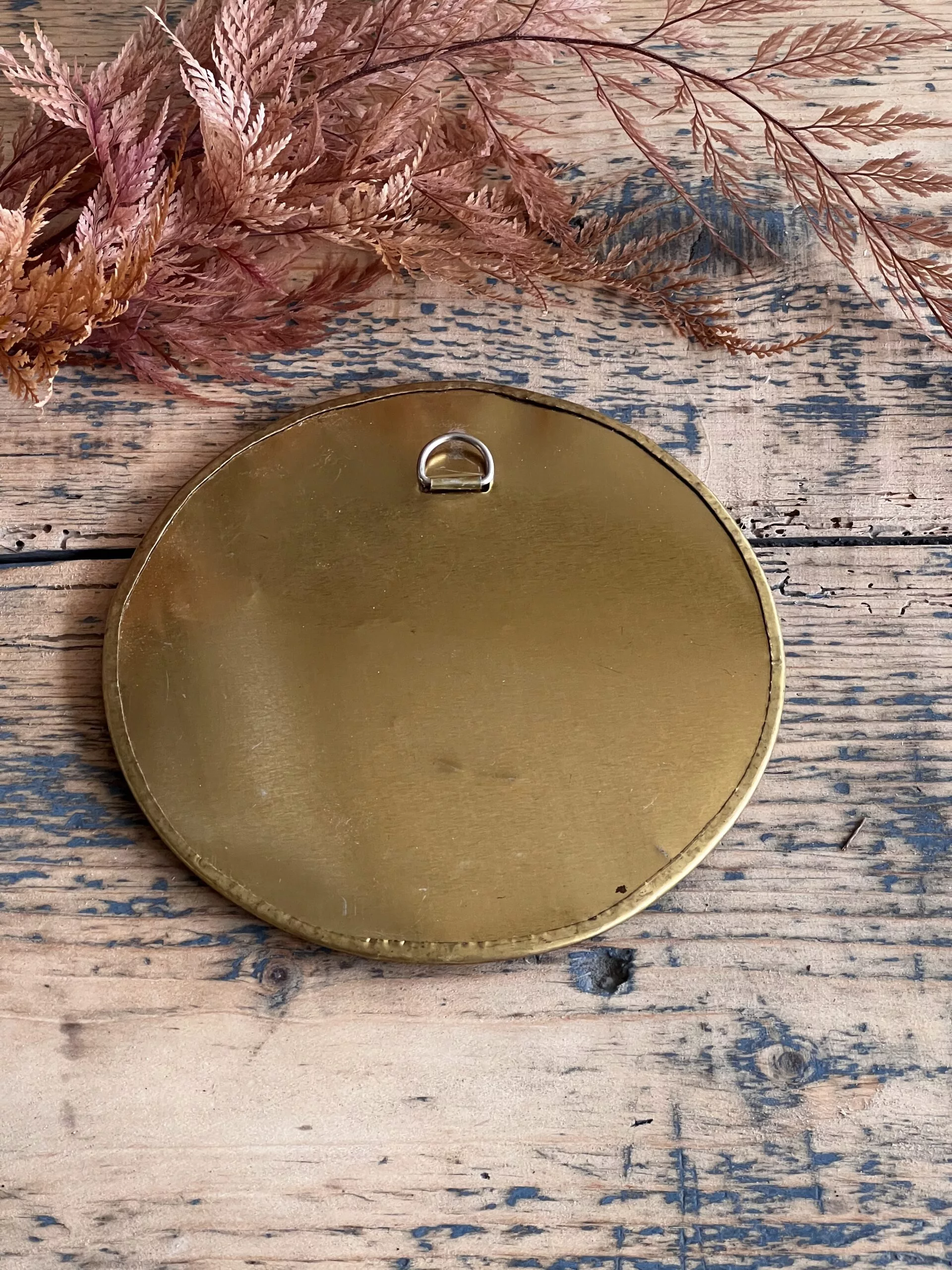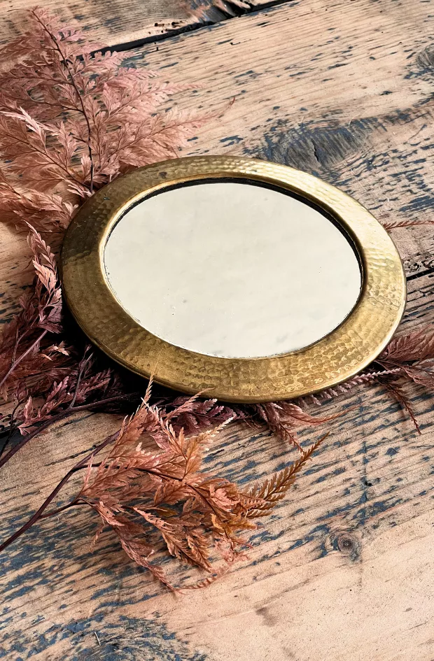 Charmant petit miroir métal doré mesurant 15 cm de diamètre.